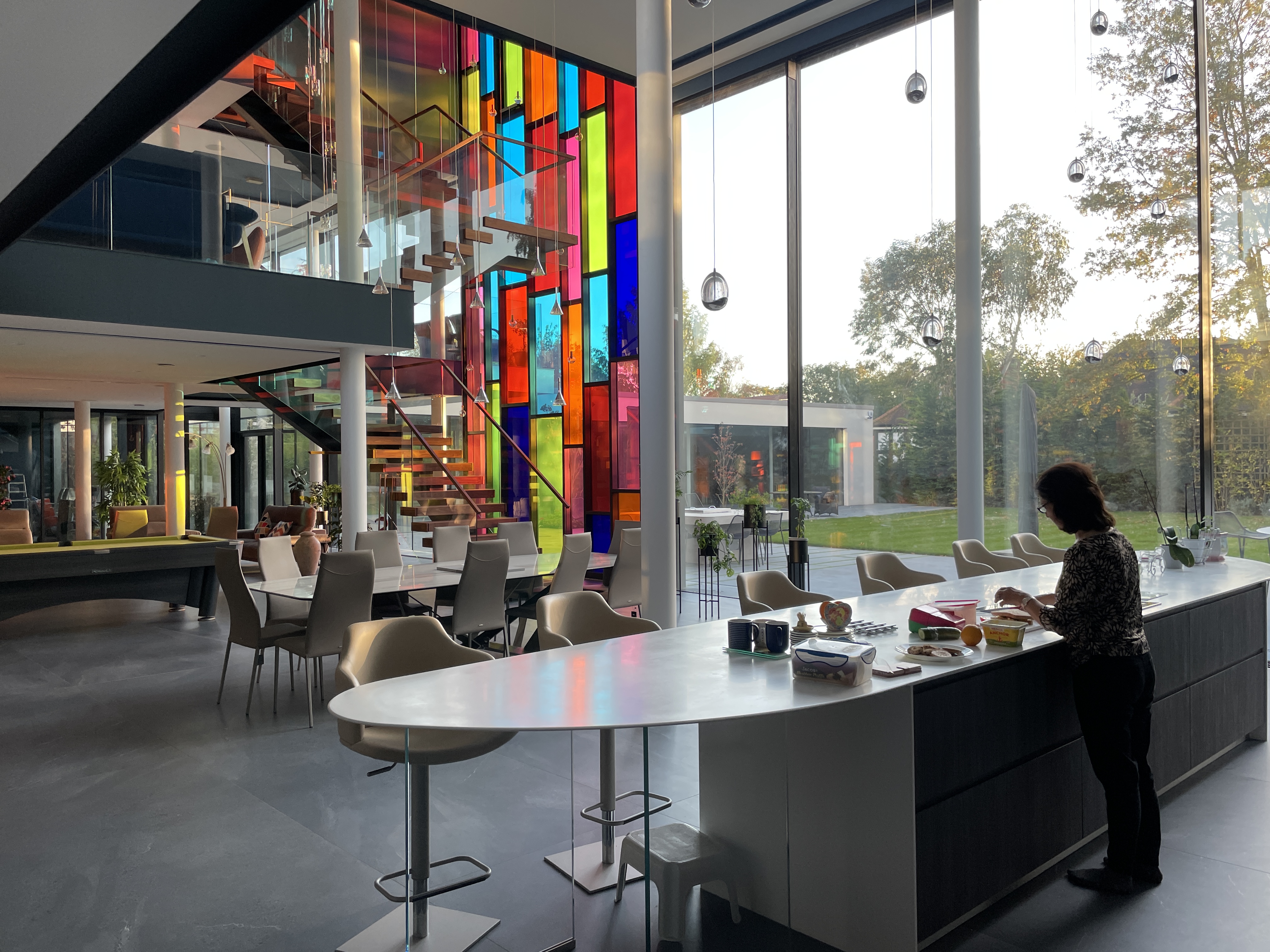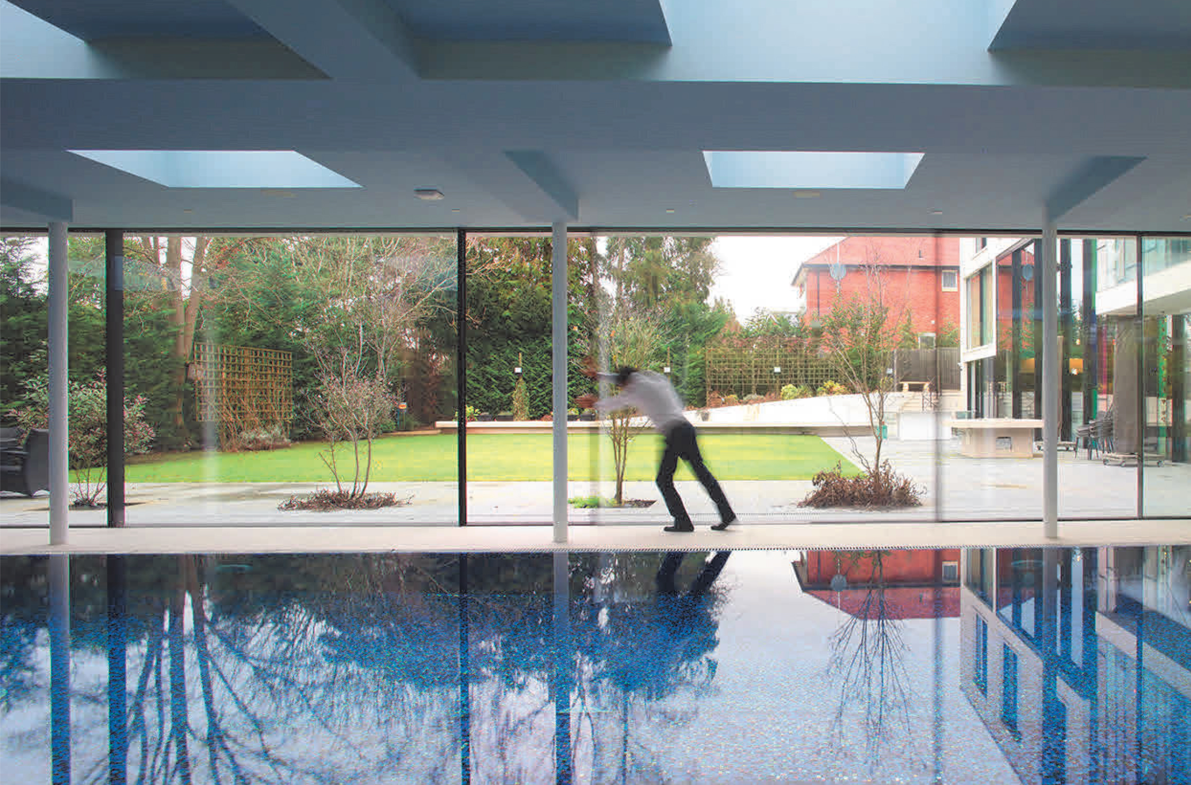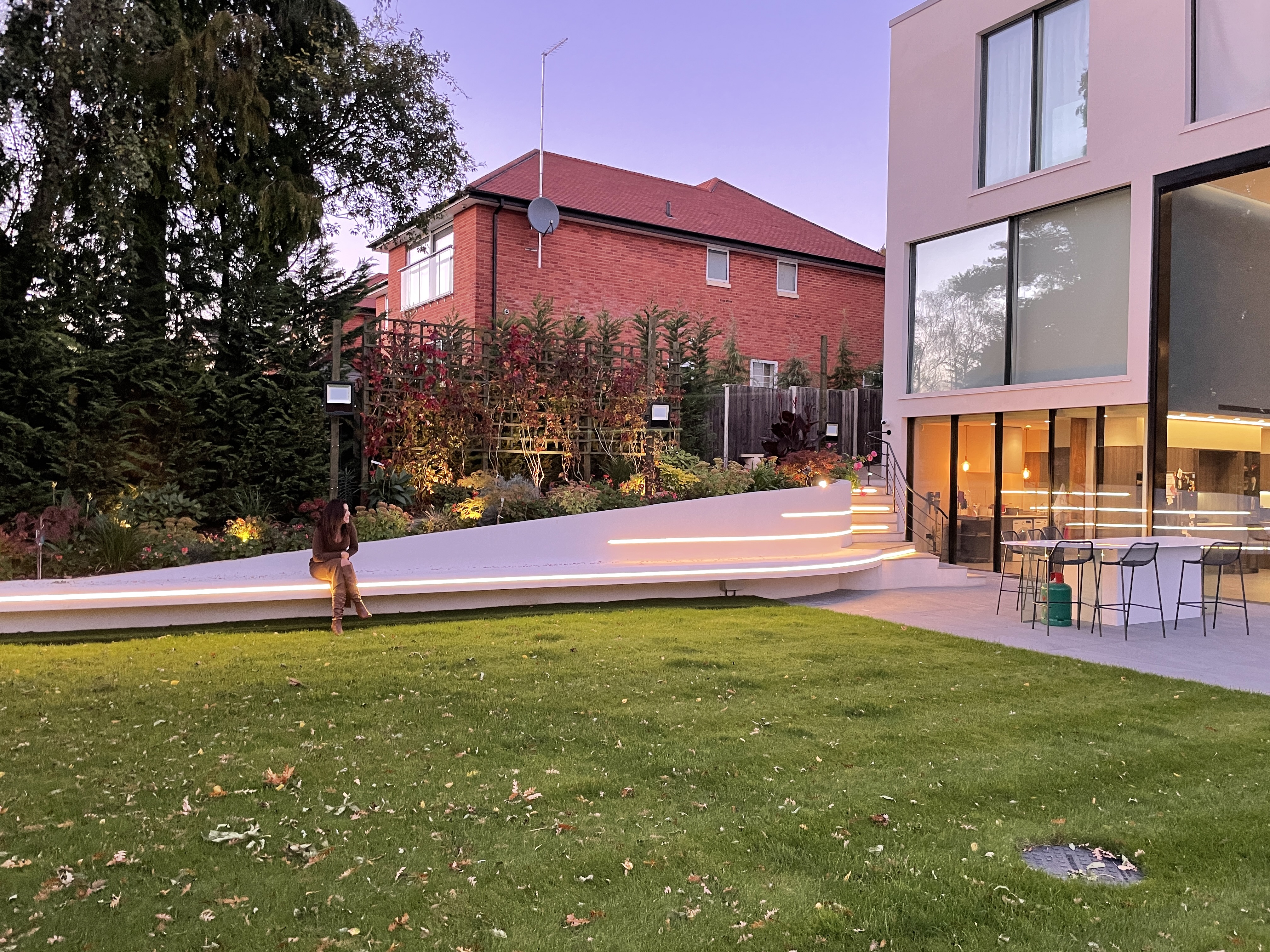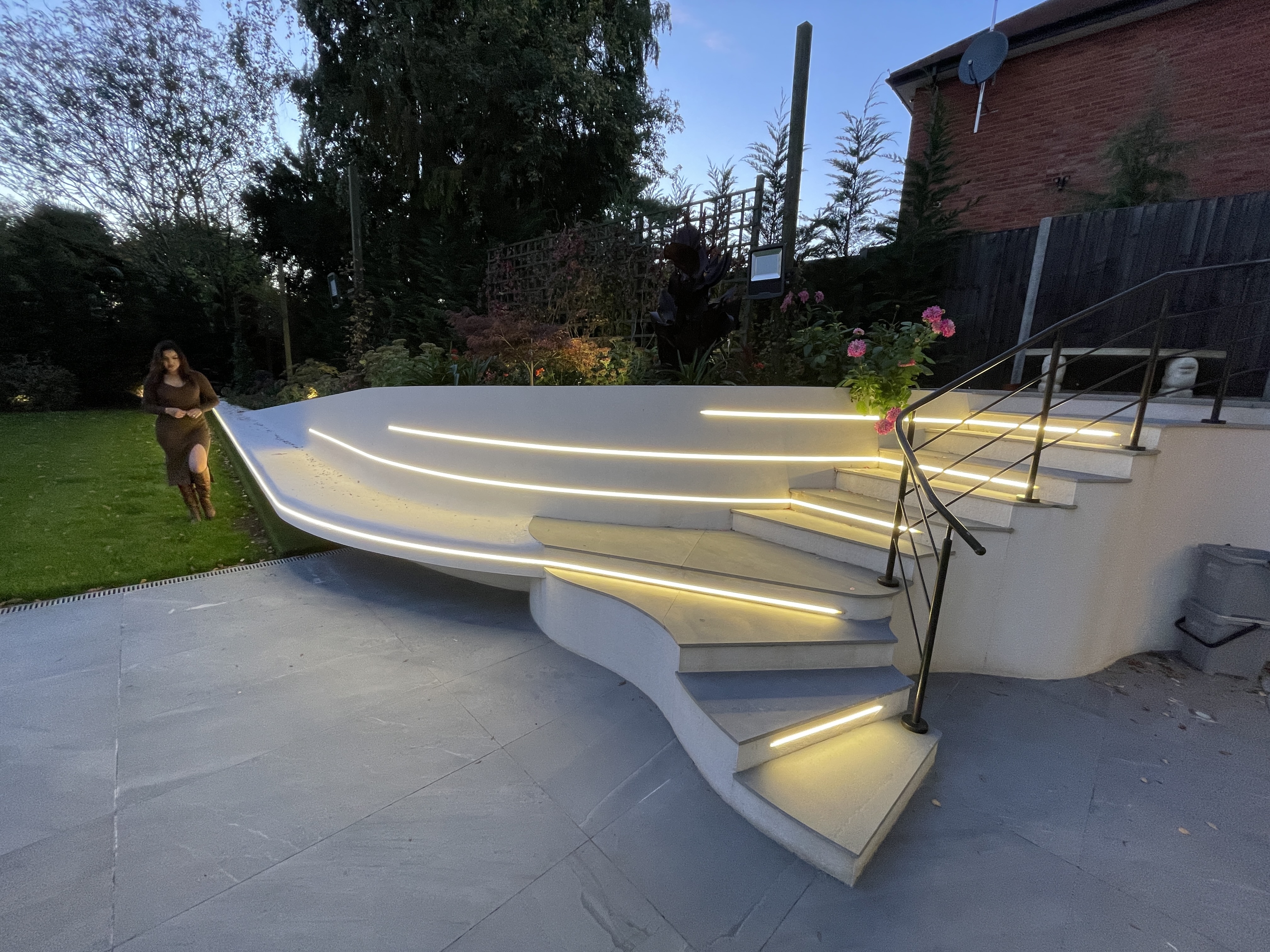 The front driveway and landscape shape is derived from the ancient Hindu symbol 'Aum'.The driveway is wide enough to